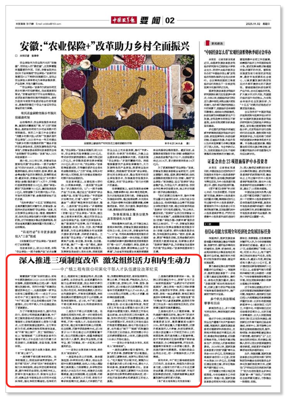中國改革報聚焦報道中廣核工程深入推進三項... 近日,《中國改革報》以《深入推進三項制度改革 激發組織活力和內生動力》為題,聚焦報道中廣核工程有限公司深化干部人才隊伍建設...